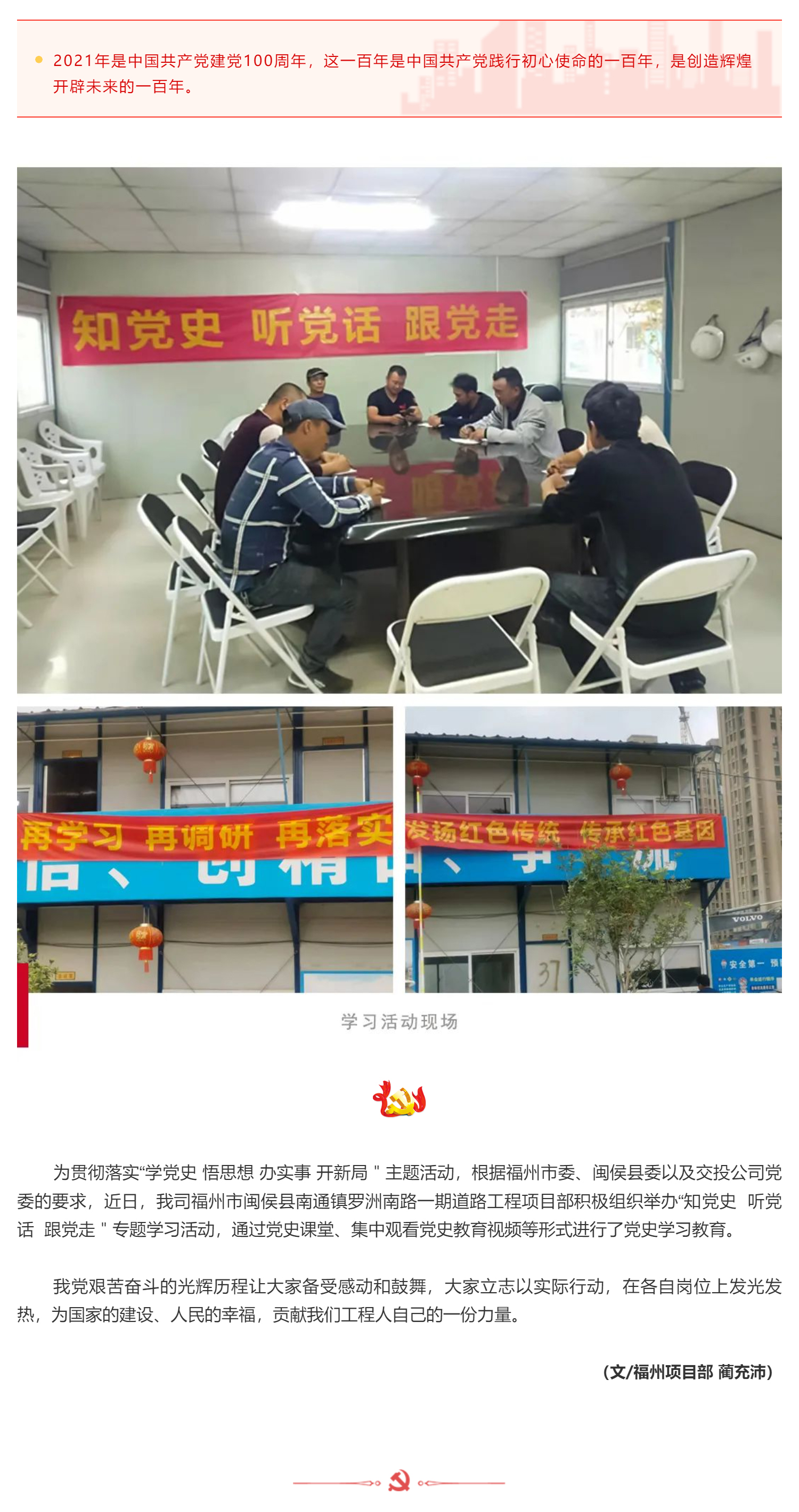 我司福州項目部組織"知黨史 聽黨話 跟黨走"主題學習活動