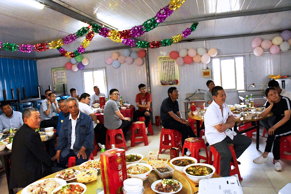 雖遠在他鄉,內心仍感受到一絲絲暖熱。晚宴前,公司現場連線了云南與南通項目部人員,大家一同觀看了員工家屬的暖心小視頻。隨后,戴總代表公司對所有員工表示了慰問并祝大家節日快樂。項目部食堂里,弘楠人歡聚一堂,共饗盛宴,大家宛若一家,其樂融融,享受著端午的節日樂趣。